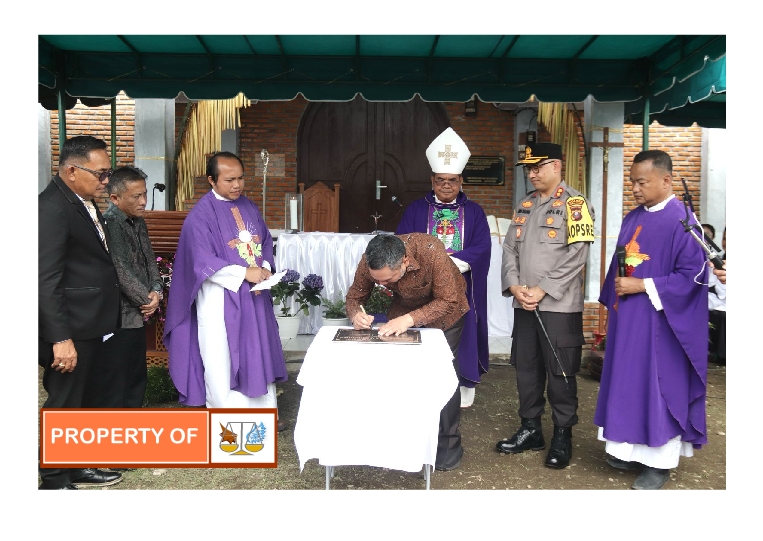 Bersama Uskup Agung Medan, MRG Kornelius Sipayung, OFM, Cap, Franc menadatangani prasasti berdirinya Gereja Katolik Stasi Santo Petrus di desa ini.