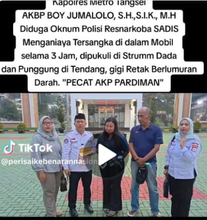 Dalam video berdurasi 05.48 ini, si kakak mengatakan, diduga oknum Polisi Satresnarkoba (Satuan Reserse Narkoba) Polres Tangsel telah melakukan penganiayaan terhadap tersangka.