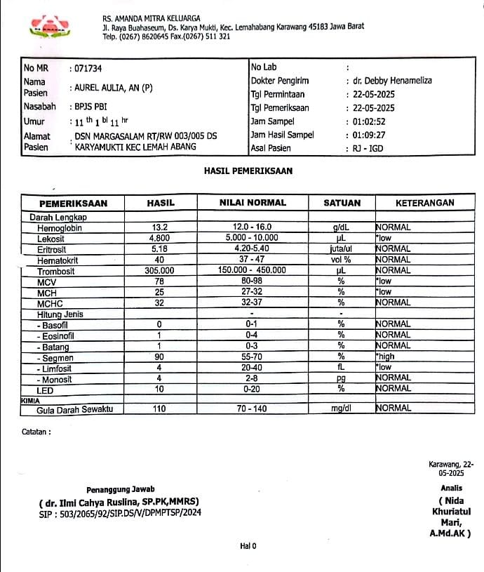 Pihak keluarga yang sejak awal mempertanyakan pengobatan dan diagnosis RS Amanda Mitra Keluarga, hanya diberikan resume medis. Upaya permintaan dokumen rekam medis lengkap dan hasil audit dari pihak rumah sakit tidak Menggubris hingga surat ini dilayangkan.