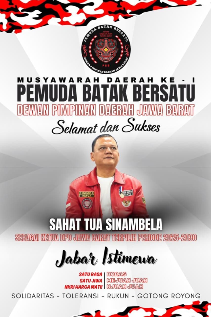Postkeadilan Subang – Pengurus DPC Pemuda Batak Bersatu (PBB) Kabupaten Subang Jawa barat,sampaikan selamat dan sukses kepada bapak” Sahat Tua Sinambela” atas terpilinya sebagai ketua DPD PBB jawa barat yang baru periode 2025 – 2030.