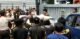 Massa GMBI mencoba merobohkan gerbang hingga terlibat bentrokan fisik dengan petugas Satpol PP dan sejumlah ormas yang berada di balik gerbang.