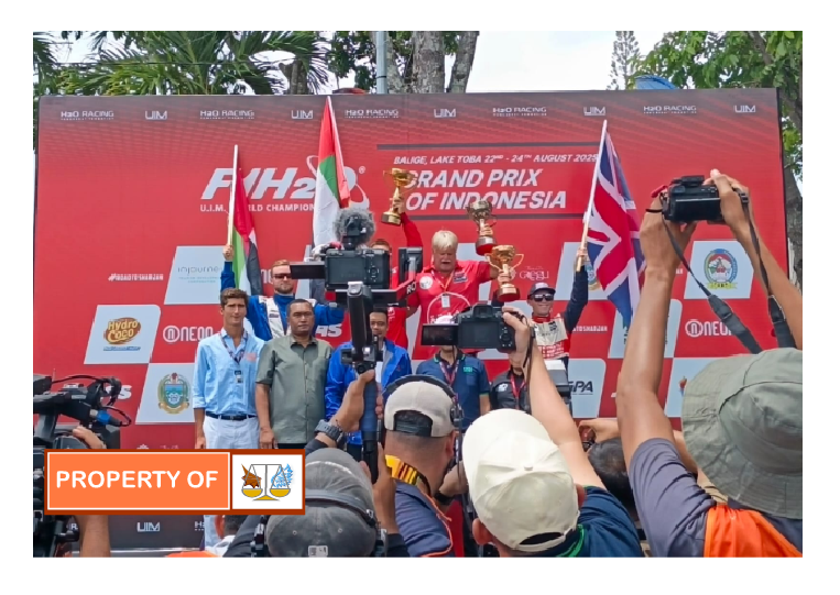 Tetapi memang Danau Toba seakan menjadi sekutu bagi Rusty Wyatt dalam balapan Grand Prix Of Indonesia di Danau Toba, Minggu (24/8/2025). Ia kembali menjadi juara satu setelah powerboat Jonas Andersson mengalami masalah.