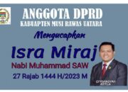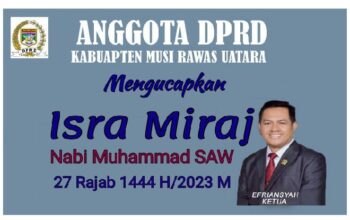 Anggota DPRD Kabupaten Musi Rawas Mengucapkan Selamat Memperingati Isra Mi’raj Nabi Muhammad SAWAdvertorial07/03/202313/02/2024Anggota DPRD Kabupaten Musi Rawas Mengucapkan Selamat Memperingati Isra Mi’raj Nabi Muhammad…