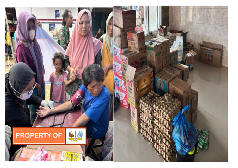 Adapun bantuan yang diberikan meliputi minyak goreng, gula, beras, telur, air mineral, roti, mukena, sajadah, sarung, pakaian layak pakai, obat-obatan, serta satu unit mesin air untuk membantu kebutuhan warga pascabanjir.
