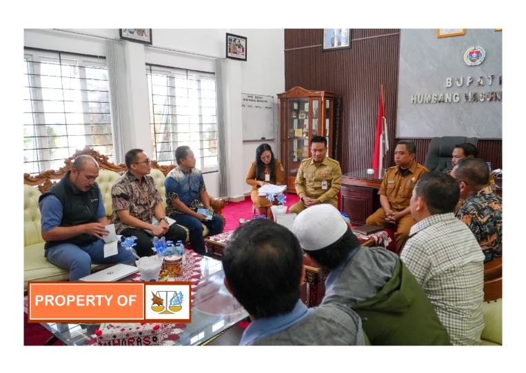 Humbahas-Postkeadilan. Bupati Humbahas Dr Oloan P Nababan SH MH didampingi Kepala Bappelitbangda Pahala Lumban Gaol, Plt Kadis Pariwisata Pemuda dan Olahraga Eliapzan Sihotang menerima kunjungan kerja PT Indonesia Asahan Aluminium (INALUM), Selasa 5 Agustus 2025 di ruang kerja Bupati Humbang Hasundutan Bukit Inspirasi Doloksanggul.