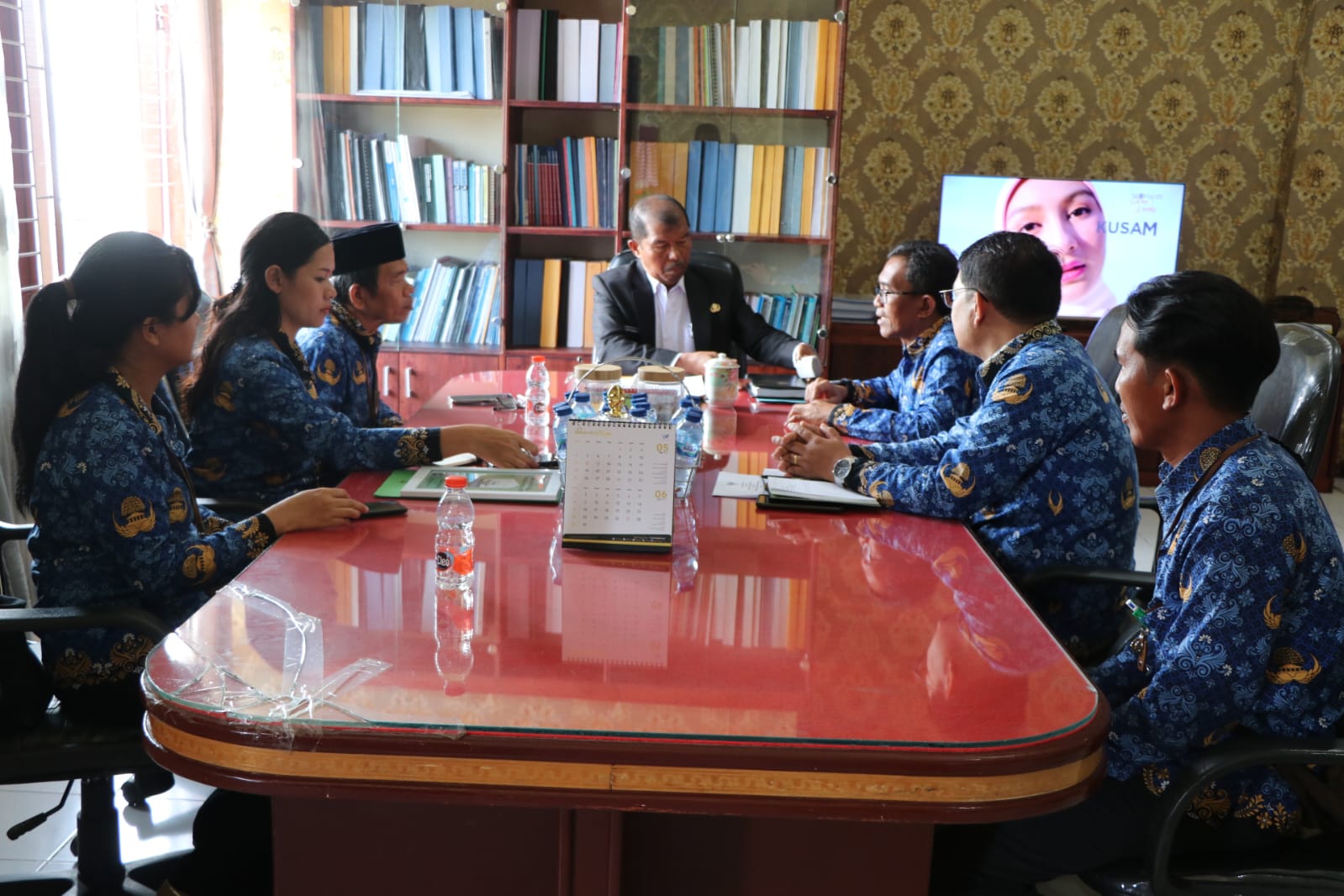 TOBA, POSTKEADILAN, Wakil Bupati Kabupaten Toba, Audi Murphy Sitorus didampingi Kepala Dinas Kominfo Sesmon TB Butarbutar menyambut kehadiran Badan Pusat Statistik (BPS) KabupatenToba saat audiensi dengan Pemkab Toba di ruang kerja Wakil Bupati Toba pada Selasa (20/5/2025) pagi.