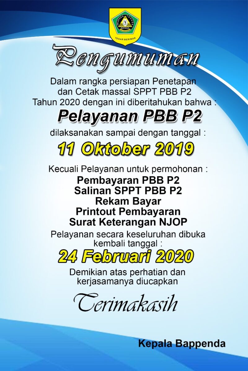 Beranda iklan Pengumuman Pelayanan PBB P2 iklanIklan BarisPengumuman Pelayanan PBB P2Post Keadilan0 min baca08/10/2019202×Pengumuman Pelayanan PBB P2Sebarkan artikel ini Post Views: 202 Baca Juga : Keluarga Besar SMAN 14 BEKASI Mengucapkan Selamat TAHUN BARU 2024 Pos TerkaitIklan BarisDPRD kabupaten Bogor mengucapkan hari jadi BogorIklan BarisKabag Umum Khairul Alpan mengucapkan Selamat dan Sukses HUT Kabupaten Lahat ke 155 tahunIklan BarisBadan Pengelolaan Pendapatan dan Aset Daerah Kabupaten Nias Selatan Mengucapkan Selamat Hari Raya IdulfitriIklan BarisKepala Badan Kesbangpol Kabupaten Nias Selatan Mengucapkan Selamat Hari Raya IdulfitriIklan BarisPimpinan & Anggota DPRD Nias Selatan Mengucapkan Selamat Hari IdulfitriIklan BarisDinas Ketahanan Pangan Kabupaten Nias Selatan Mengucapkan Selamat Hari Paskah 31 Maret 2024