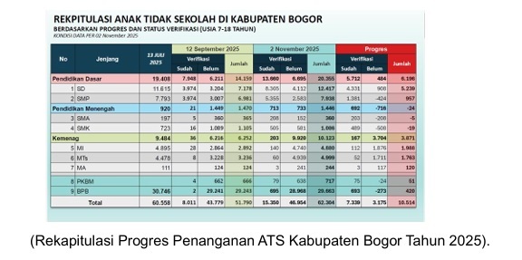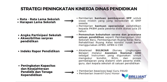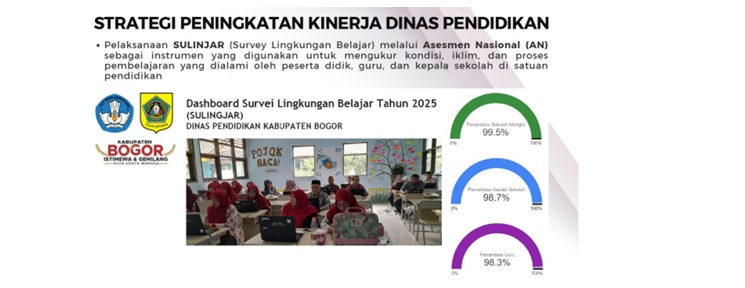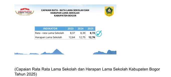 Dalam peningkatan kualitas layanan pendidikan dalam capaian Rata-Rata Lama Sekolah. Pemerintah Kabupaten Bogor melalui Dinas Pendidikan menorehkan prestasi peningkatan capaian yang segnifikan pada tahun 2025. Dimana serangkaian program telah dilaksanakan yang diantaranya ;