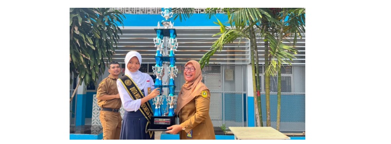 - Dafia Fadha Direja, siswa kelas 9E SMP Negeri 1 Jonggol, yang berhasil meraih Juara Kategori Duta Wisata Nasional dalam ajang Grand Final Indonesia Model Competition 2025.