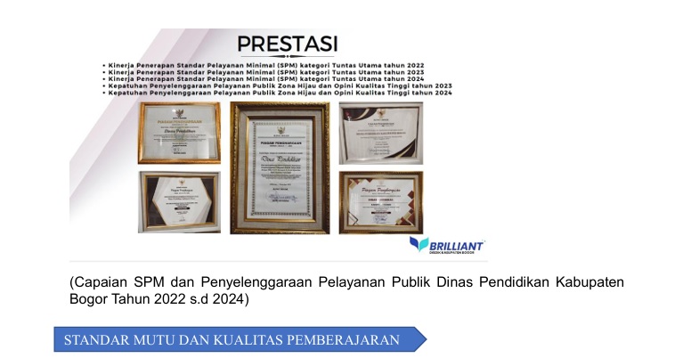 Sebagai perpanjangan tangan Bupati Bogor melalui Peraturan Bupati Bogor Nomor 129 Tahun 2021 tentang Kedudukan, Susunan Organisasi, Tugas dan Fungsi Serta Tata Kerja Dinas Pendidikan. Bersama ini disampaikan capaian kinerja dan perencanaan Dinas Pendidikan Kabupaten Bogor Tahun Anggaran 2025.