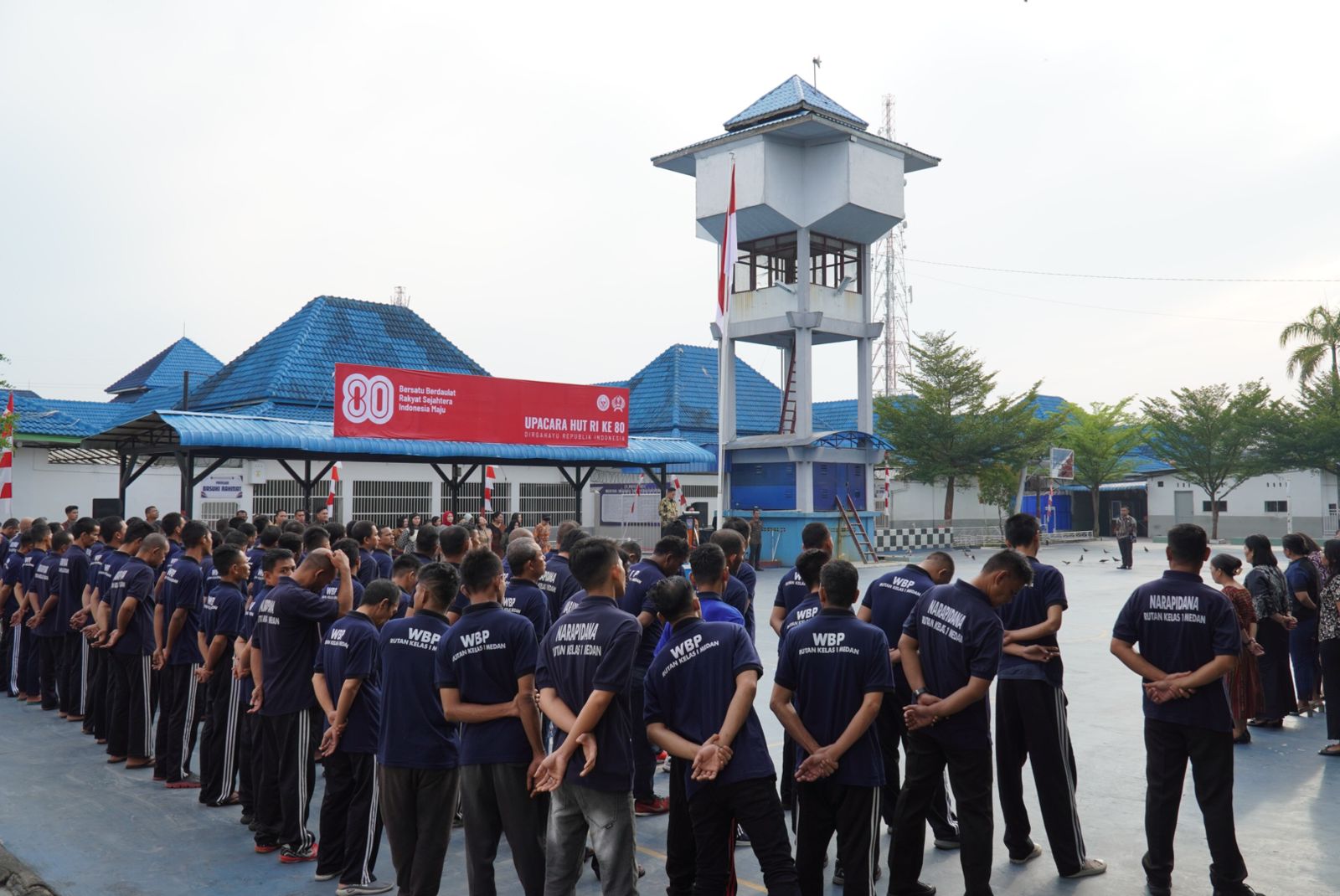 Medan – Postkeadilan – Rumah Tahanan Negara (Rutan) Kelas I Medan Kanwil Ditjenpas Sumut menggelar upacara bendera dalam rangka memperingati Hari Ulang Tahun ke-80 Kemerdekaan Republik Indonesia, pada hari Sabtu, 17 Agustus 2025. Upacara berlangsung khidmat di lapangan utama Rutan dengan diikuti oleh jajaran pejabat struktural, seluruh pegawai, serta perwakilan dari warga binaan.